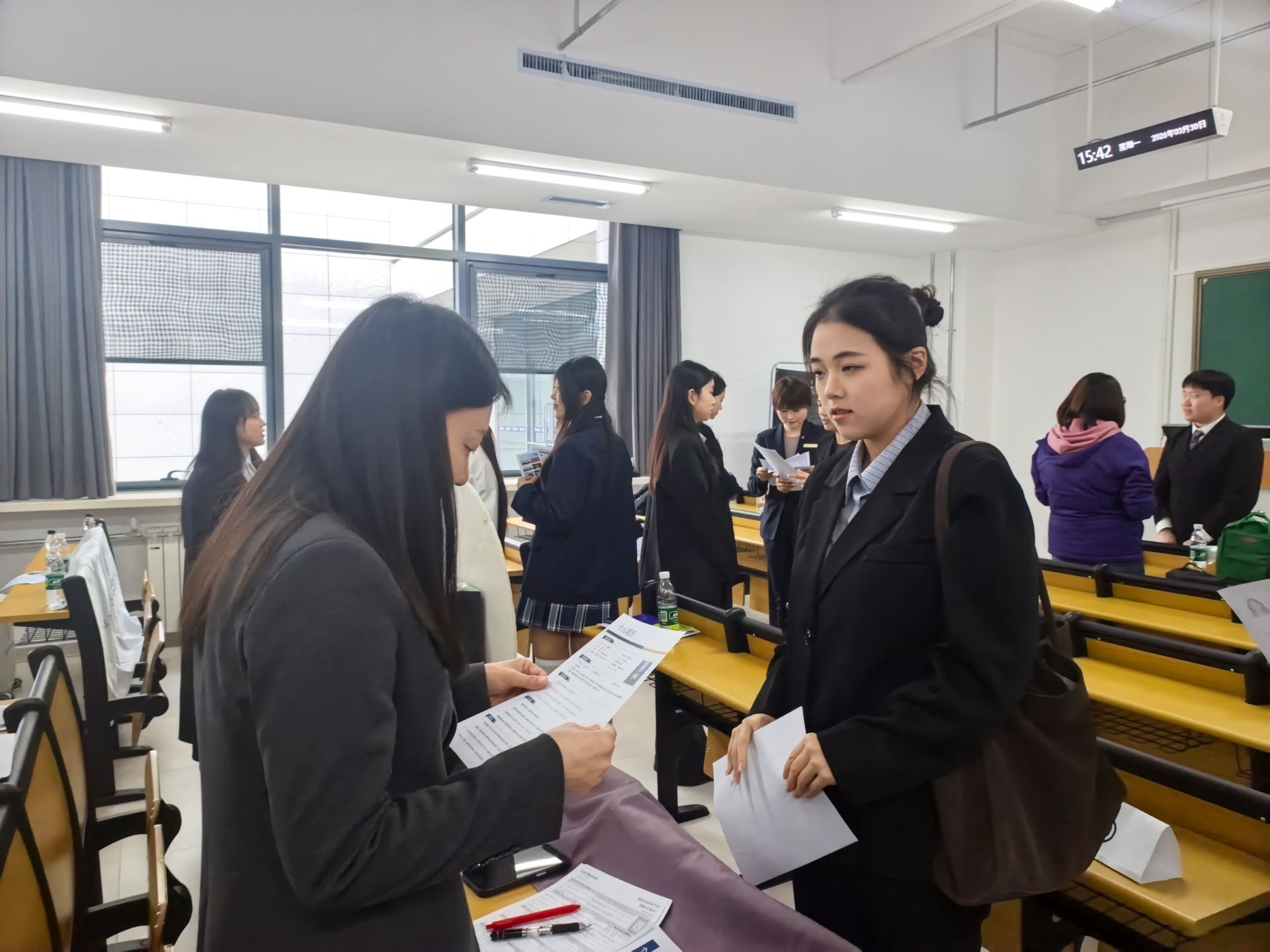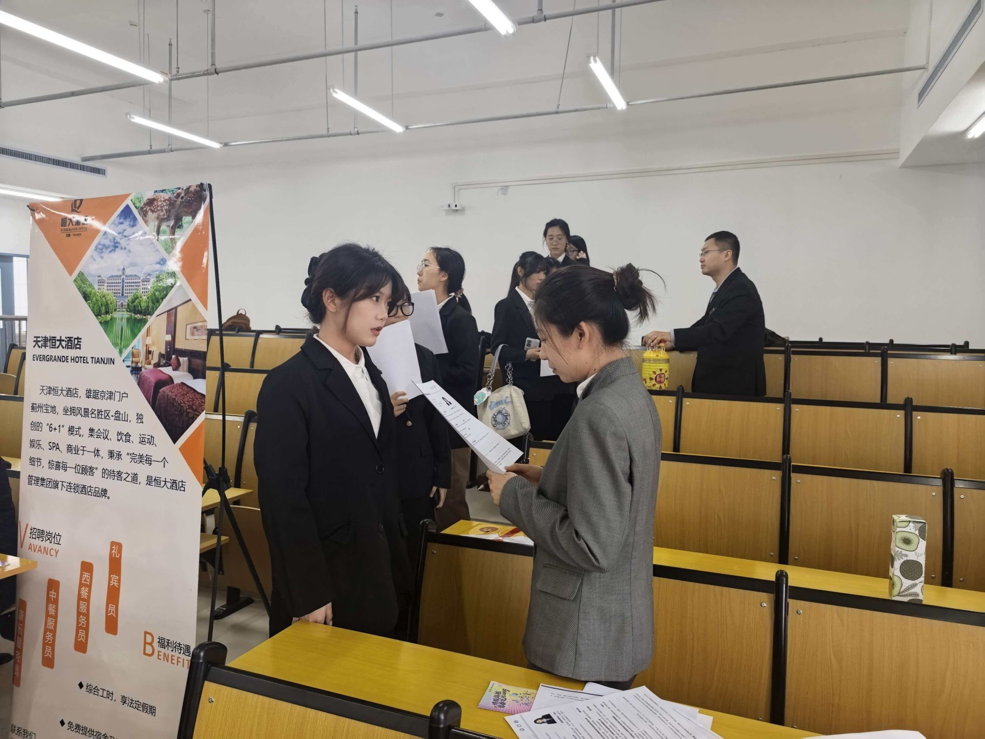 实习双选会现场秩序井然、氛围热烈。各单位负责人围绕C7平台、岗位需求、培养体系、职业发展通道等内容展开分享,全面介绍高端酒店行业发展前景与人才标准,帮助学生明晰职业方向、提升行业认知。同学们身着正装、手持简历,认真聆听、积极互动、自信展示,表现出天商学子良好的职业素养与精神风貌。本次双选会不仅是一次实习岗位对接,更是一堂沉浸式职场实训课,有效提升学生求职能力与岗位适配度,为顺利进入职场、实现高质量就业奠定坚实基础。